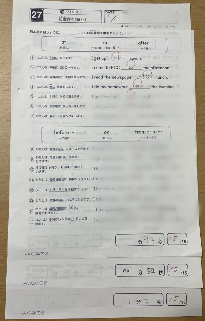 当教室のPAクラスでは、毎週「ボキャブラリーや文法のテスト」に取り組んでいます。