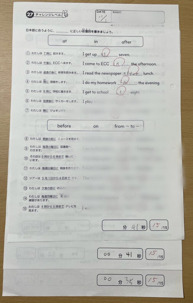 最近は「ここは過去形だから…」と自分で気づいて修正する姿も見られ、理解の深まりを感じます。