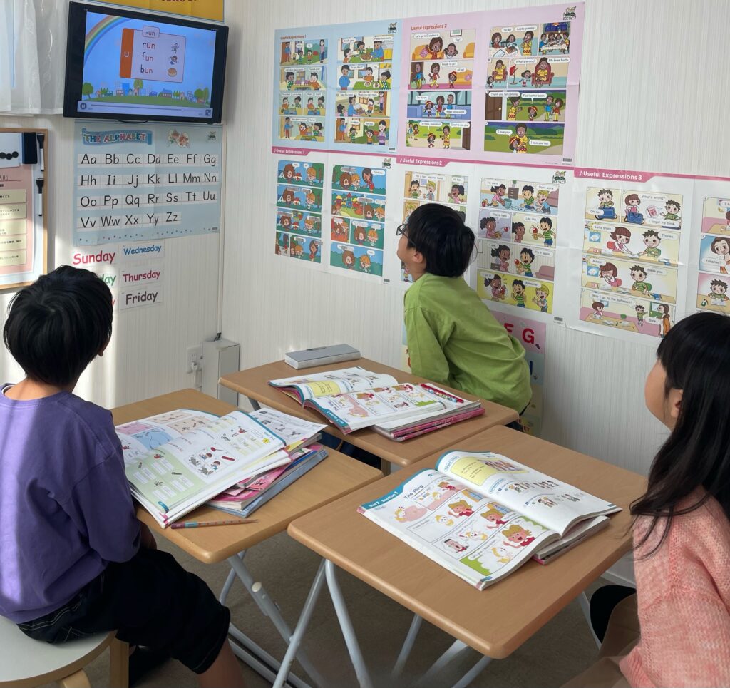 PFクラスでは、会話練習(ダイアログ)と読み書きの基礎となるフォニックスを組み合わせ、