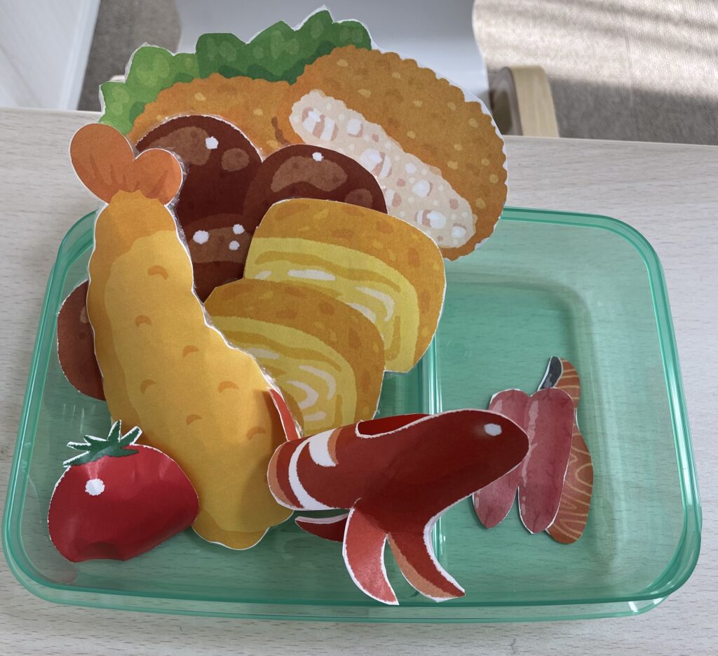 好きなものを選んでお弁当箱へ入れてもらい、おいしそうなお弁当が完成しました。