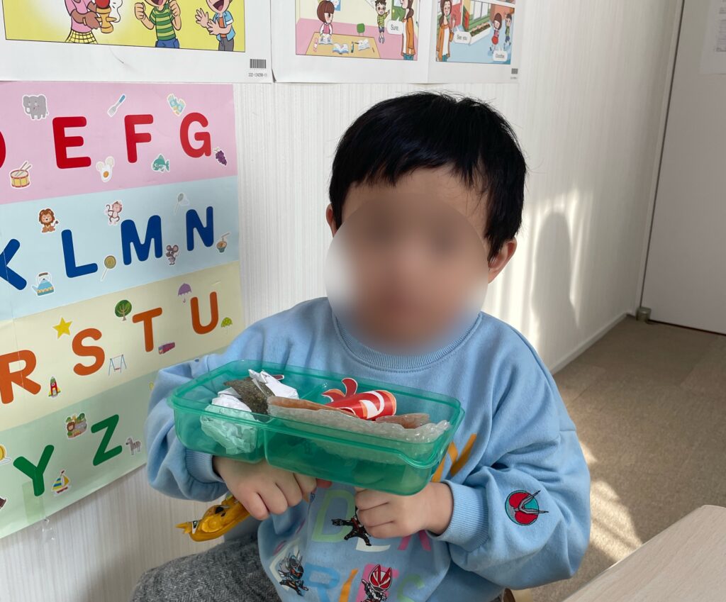 自分で作る体験を通して、日常で使う英語が遊びの中で自然と出てきます。